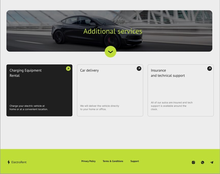 В результате комплексного подхода к дизайну и взаимодействию, сайт по аренде электроавтомобилей не только привлек внимание целевой аудитории, но и значительно увеличил эффективность конверсии, что дало возможность компании успешно конкурировать на рынке. Каждый элемент дизайна продуман и обоснован, что делает этот проект важной частью портфолио и примером успешной реализации дизайнерской идеи.