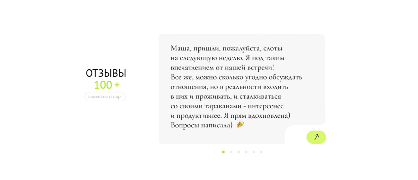 Социальные доказательства: Раздел «Отзывы клиентов» был выделен и оформлен таким образом, чтобы внушать доверие. Это создало ощущение общности и помощи, что положительно сказалось на решениях пользователей.